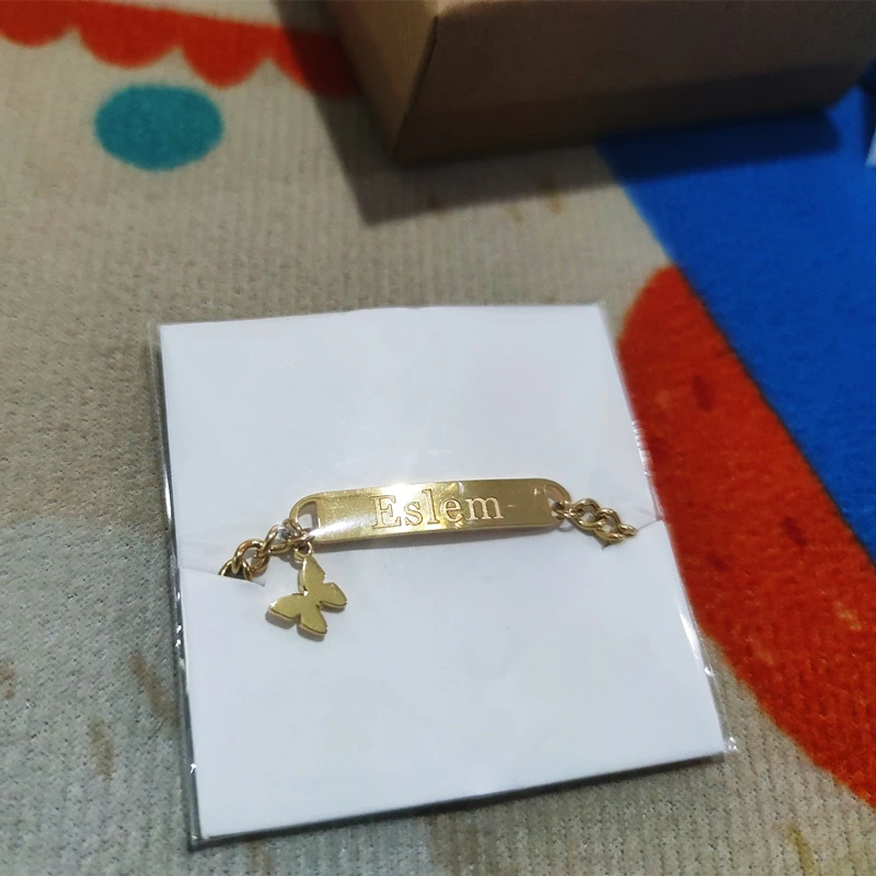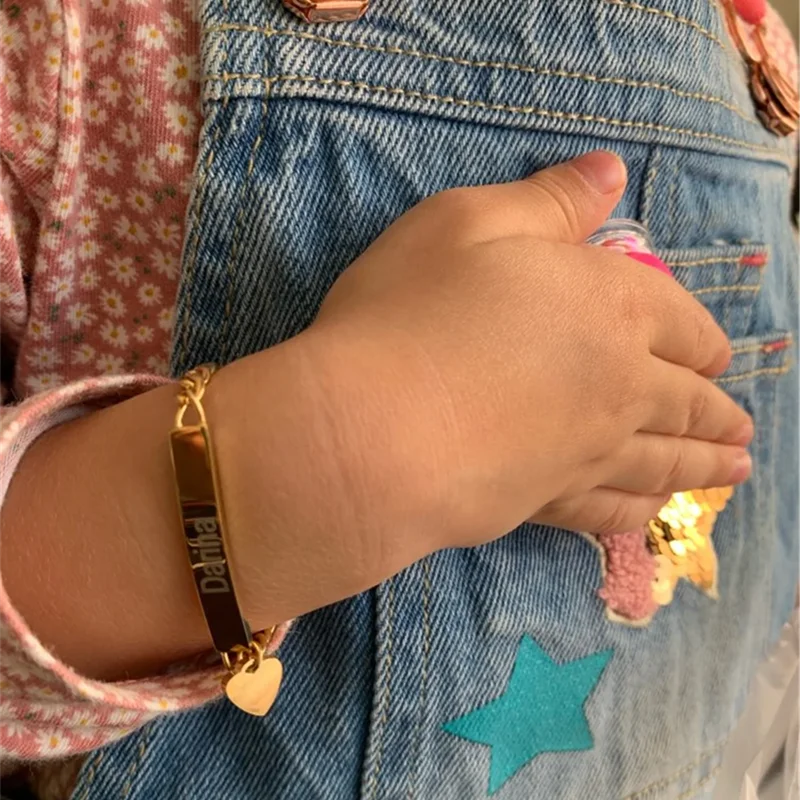 Custom Baby Name Bracelet Personalized Long Bar Engraved Children Nameplate Heart Crown Curb Chain Bracelets Kids Best Gifts