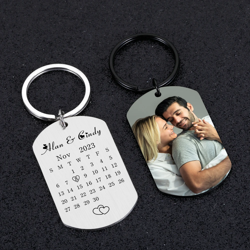 Personalised Calendar Keychain Custom Photo Name Key Chain for Couple Him Her Wedding Anniversary Gifts Special Date Keyring